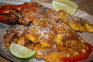 - Tostones. Trozos de plátano verde aplastados y fritos.