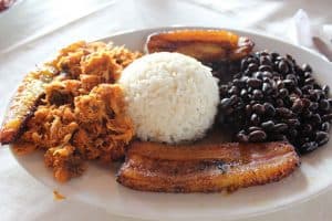 Entre los platos típicos cubanos se encuentran elaboraciones como el ajíaco, arroz con distintos ingredientes combinados. Entre estos arroces se encuentra el famoso arroz a la cubana. Plato de arroz con plátano, carne y huevo.