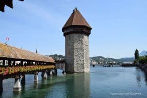 Kapellbrücke. Hoy en Aventuras con Sabores os mostramos todo un icono de Suiza, el Kapellbrücke. Este el bello puente que atraviesa el río Reuss en la ciudad de Lucerna. Este puente es la más típica postal de la bella ciudad de Lucerna, ya que es una de las mayores atracciones turísticas de la ciudad. Este puente de Suiza y el monte Cervino, es uno de los lugares más fotografiados por los visitantes en su viaje al país helvético.